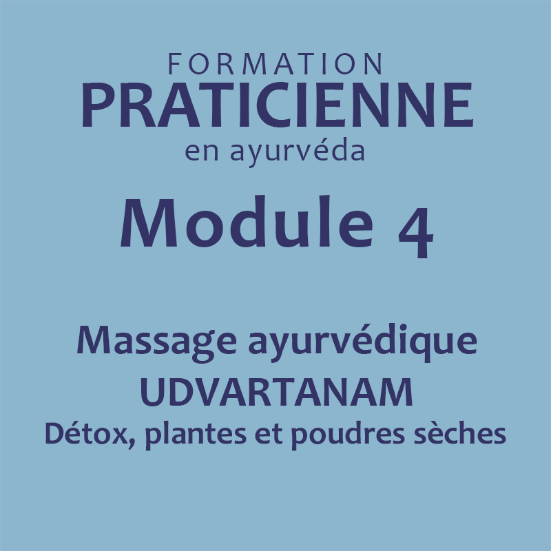 La formation, « Massage ayurvédique Udvartanam – Détox par les plantes et poudres sèches » aborde de manière approfondie l’usage des plantes et poudres en application directe sur la peau, ou mélangées avec de l’huile de massage pour faire une pâte.